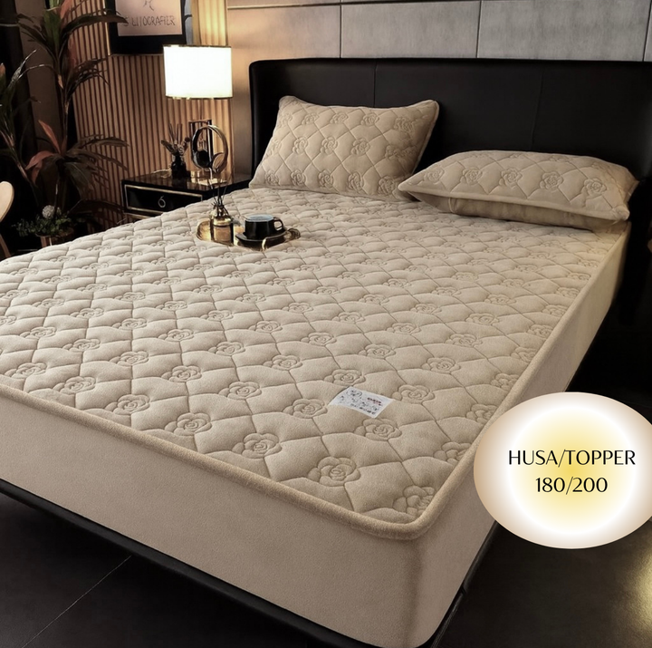 Husa/Topper pentru saltea cu elastic este o soluție excelentă pentru a îmbunătăți confortul somnului și pentru a reduce durerile de spate. Această husă se atașează ușor pe saltea și oferă multiple beneficii: