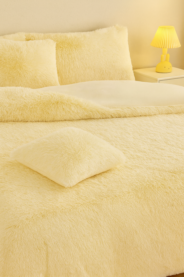 Lenjerie pufoasa COCOLINO cu 6 piese, pentru pat dublu. Produsul prezinta doua texturi de material cocolino, astfel incat cearsaful de pat, partea inferioara a cearsafului de pilota si partea inferioara a fetelor de perna sunt din microfibra plusata fina; cearsaful de pilota pe fata principala si fetele de perna sunt din cocolino(microfibra) super pufos, fluffy.