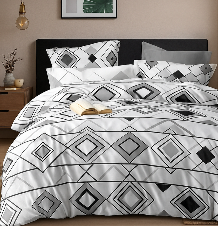 Lenjerie de pat 6 piese tip Bumbac, țesătură tip finet, este moale la atingere, durabil, fiind o alegere bună și pentru cei cu pielea mai sensibilă. Este important  alegem o lenjerie de pat care  ne placă și în care  ne simțim confortabil, deoarece aceste aspecte contribuie la calitatea somnului.
