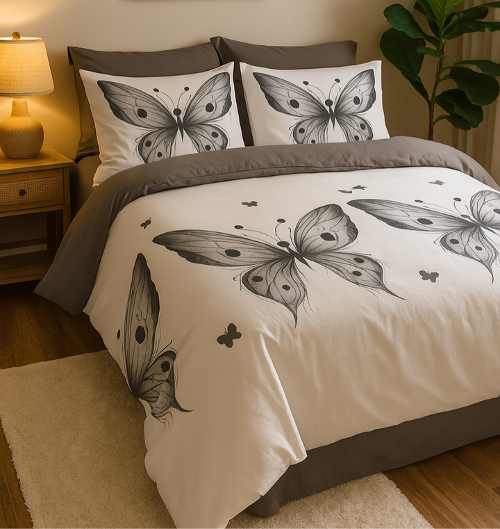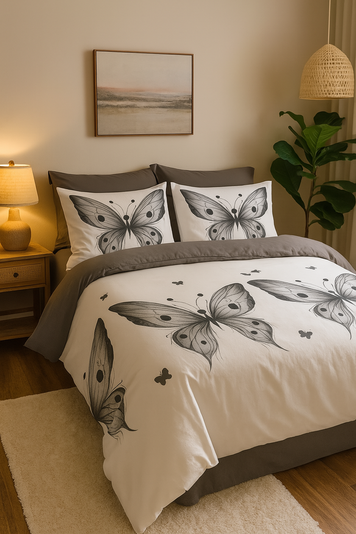 Lenjerie de pat 6 piese tip Bumbac, țesătură tip finet, este moale la atingere, durabil, fiind o alegere bună și pentru cei cu pielea mai sensibilă. Este important  alegem o lenjerie de pat care  ne placă și în care  ne simțim confortabil, deoarece aceste aspecte contribuie la calitatea somnului.