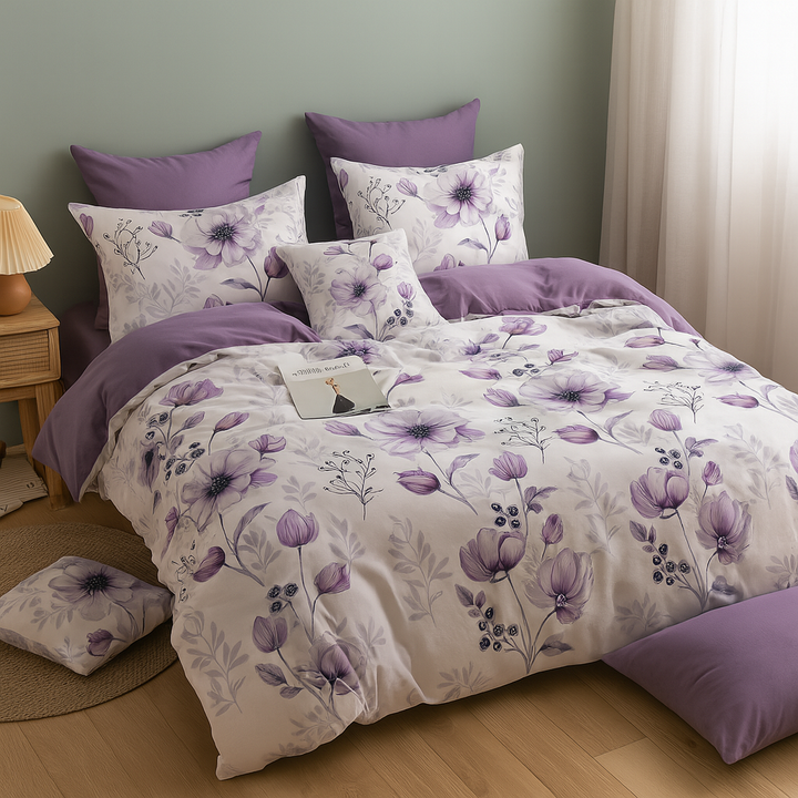 Lenjerie de pat 6 piese tip Bumbac, țesătură tip finet, este moale la atingere, durabil, fiind o alegere bună și pentru cei cu pielea mai sensibilă. Este important  alegem o lenjerie de pat care  ne placă și în care  ne simțim confortabil, deoarece aceste aspecte contribuie la calitatea somnului.