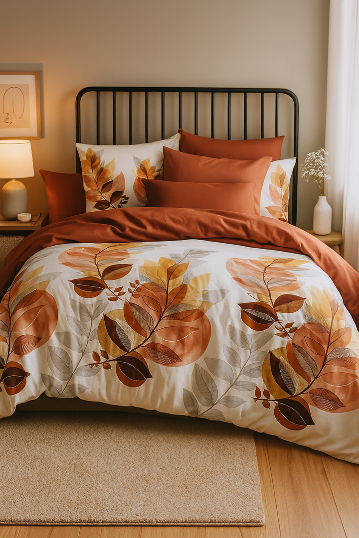 Lenjerie de pat 6 piese tip Bumbac, țesătură tip finet, este moale la atingere, durabil, fiind o alegere bună și pentru cei cu pielea mai sensibilă. Este important  alegem o lenjerie de pat care  ne placă și în care  ne simțim confortabil, deoarece aceste aspecte contribuie la calitatea somnului.