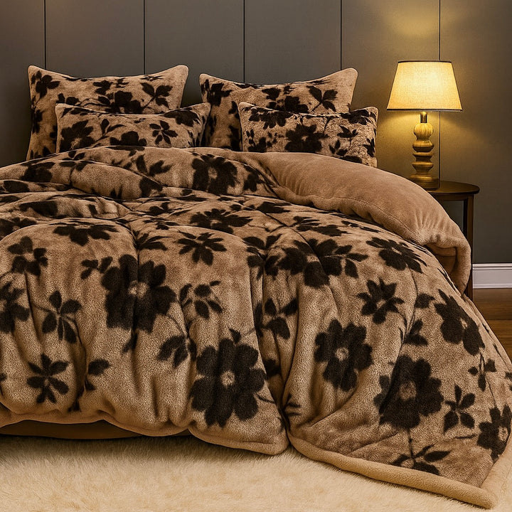 Lenjeria Premium tip blană de iepure te învăluie într-o senzație unică de căldură și finețe, perfectă pentru nopțile reci. Materialul ultra-pufos imită fidel textura blănii de iepure, oferind o atingere extrem de moale și catifelată, dar și un aspect elegant, luxos.