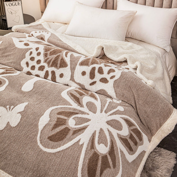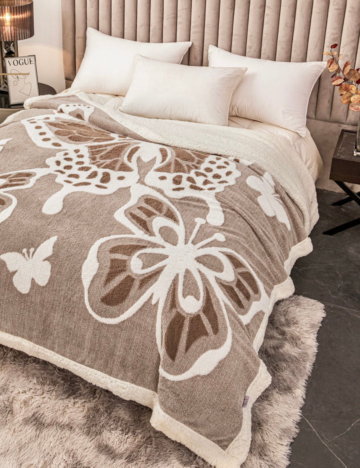 Patură groasă cu blăniță 200/230, model fluturași în relief, cod: PFJ002