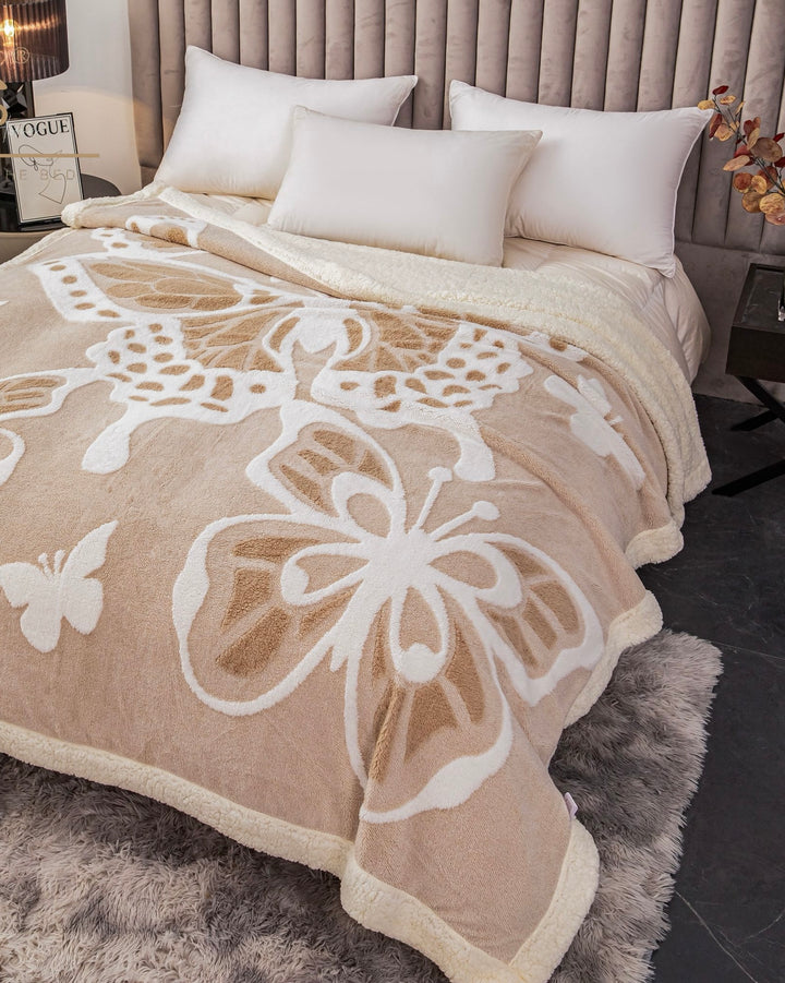 Patură groasă cu blăniță 200/230, model fluturași în relief, cod: PFJ004
