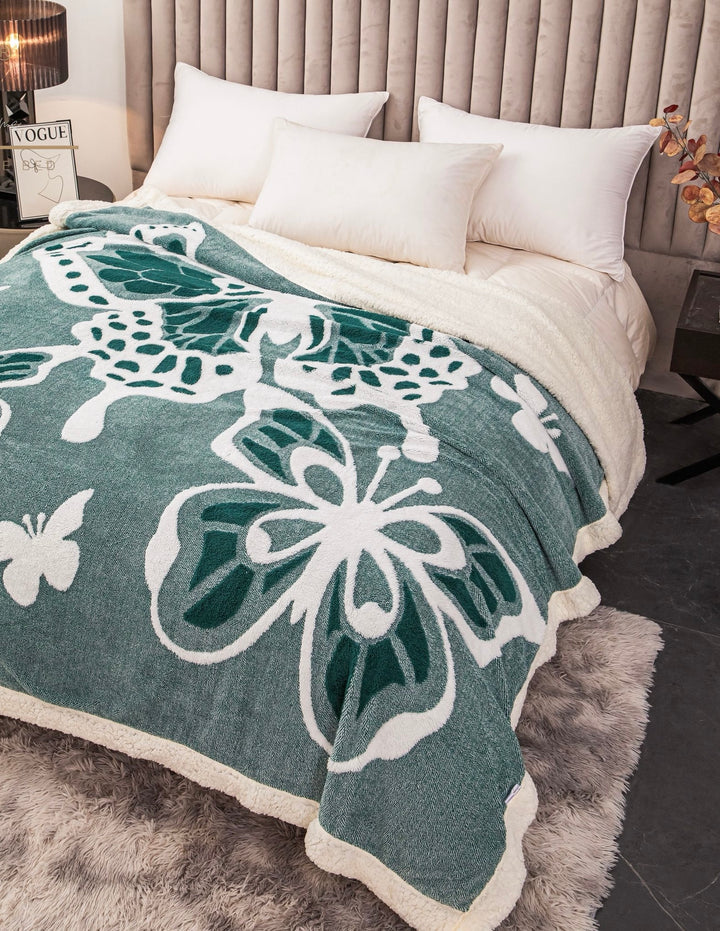 Patură groasă cu blăniță 200/230, model fluturași în relief, cod: PFJ007